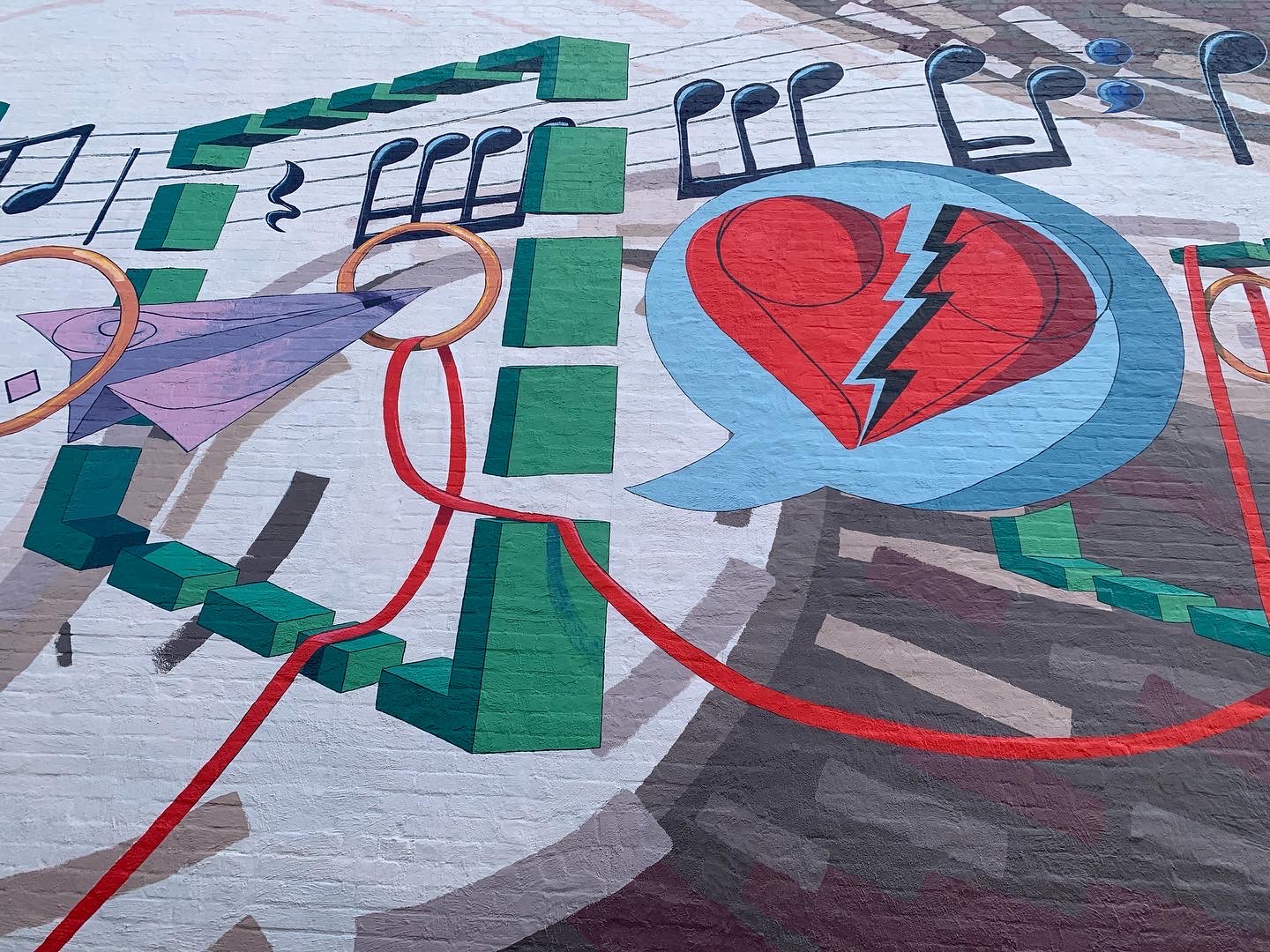 "Wall of Hope", designed and painted by Patrick Tisdale of JJ Tower, located at 49 W Monroe Street, Franklin, Indiana